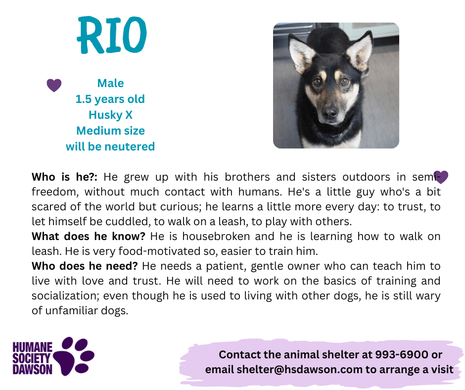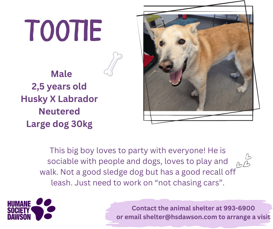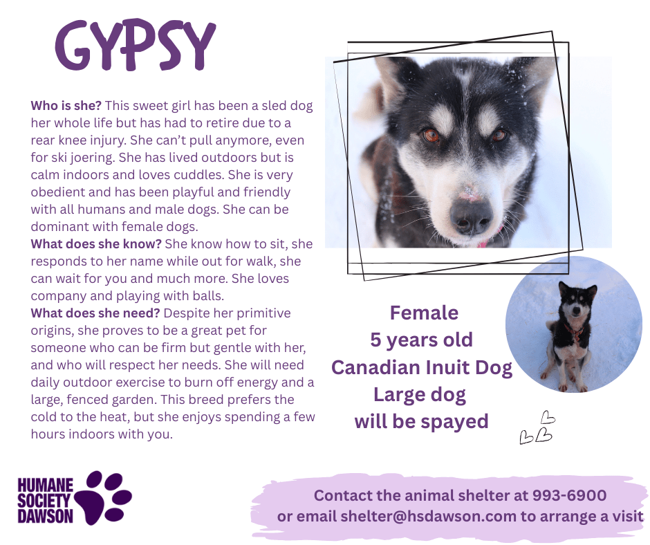 At Humane Society Dawson, our priority is to find suitable homes in the Klondike Region. Keeping adoptions local means that humans and animals can visit and really get to know each-other before a commitment is made. It also means that HSD staff are on hand to help out with any “bumps in the road”. However, location is not the only factor we take into account when homing an animal, and if no suitable match can be found in the Klondike, we will look to adopting to a home elsewhere in the Yukon or Canada that fits with the individual’s personality and lifestyle.