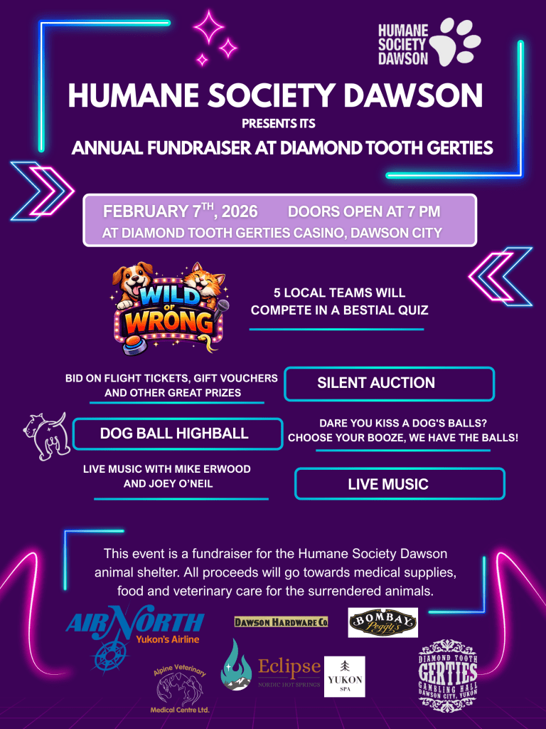 Thank you to all of our wonderful volunteers and sponsors of the 2018 summer fundraising season!! We could not do it without you and your thoughtfulness and generosity. Special Thanks to the Klondike Visitors Association for their consistent support through fundraising opportunities as well as the grants that HSD receives each year. We would also like to send a special Thank You to The Feed Store Whitehorse for their continued support for our fundraisers including the Dog Show as well as the bonuses we receive from them each year. Air North also continuously supports HSD through their compassionate care flight program allowing us to send or receive dogs as needed throughout the Yukon and BC.